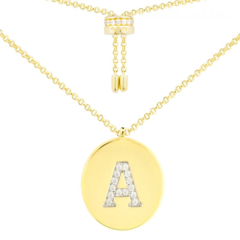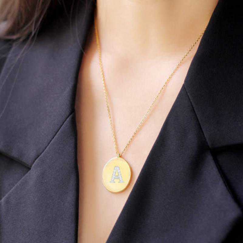 【明星同款】APM Monaco金黄色英文名字首字母项链女 圆牌毛衣锁骨颈链 AC3880OXY 简约S925银挂件情侣闺蜜送女友礼物中性男款潮首饰品