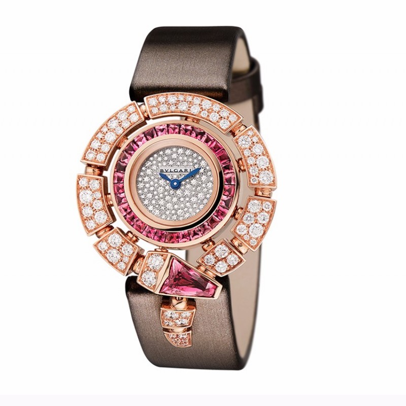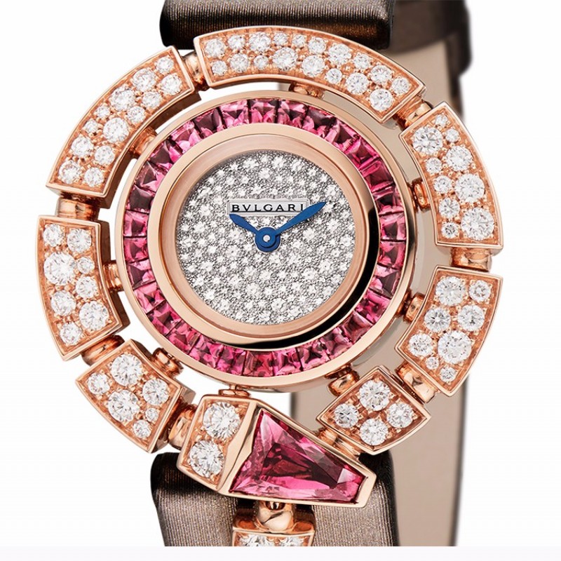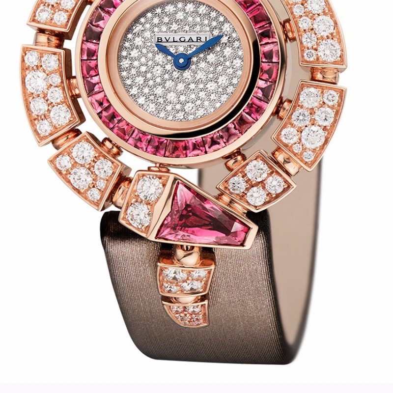 BVLGARI/宝格丽 Serpenti系列 女士玫瑰金表壳蛇形雪密钻石表盘石英表手表女表 102537