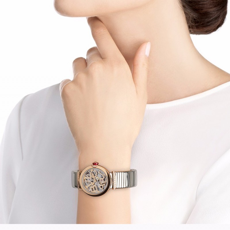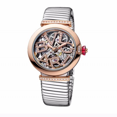 BVLGARI/宝格丽 LVCEA系列 女士镂空BVLGARI徽标圆形切割钻石装饰表盘不锈钢表带机械表腕表手表女表103093
