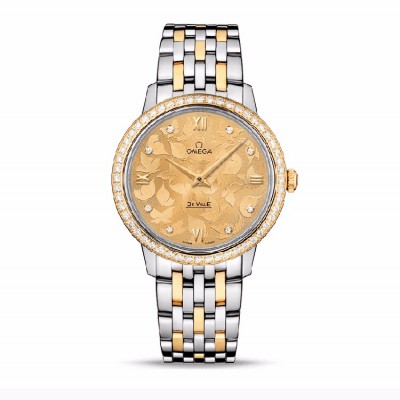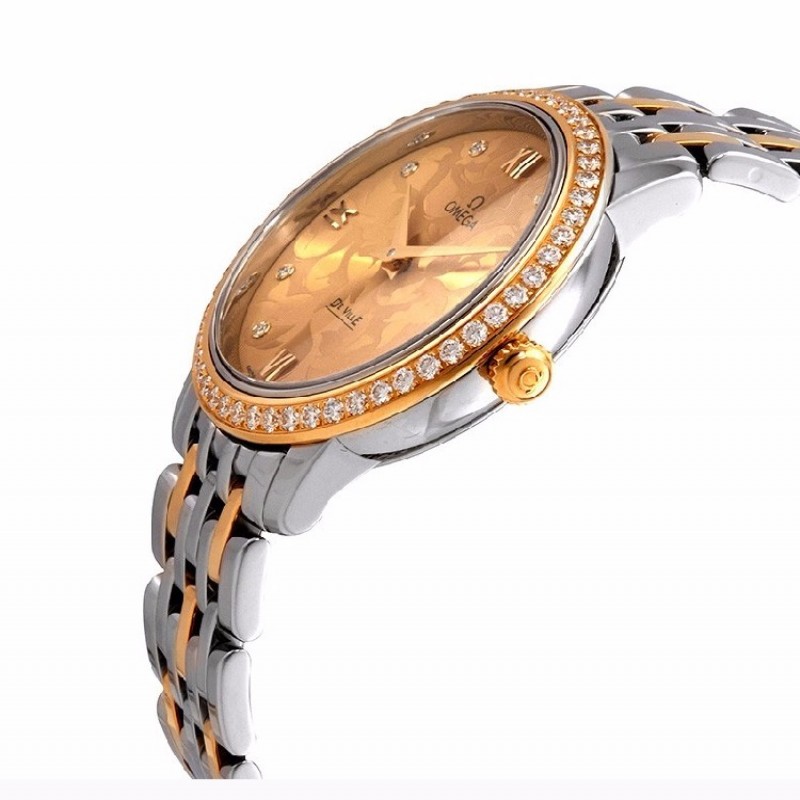OMEGA/欧米茄 碟飞系列 女士间金表链金色表盘石英表手表腕表女表 424.25.33.60.58.001