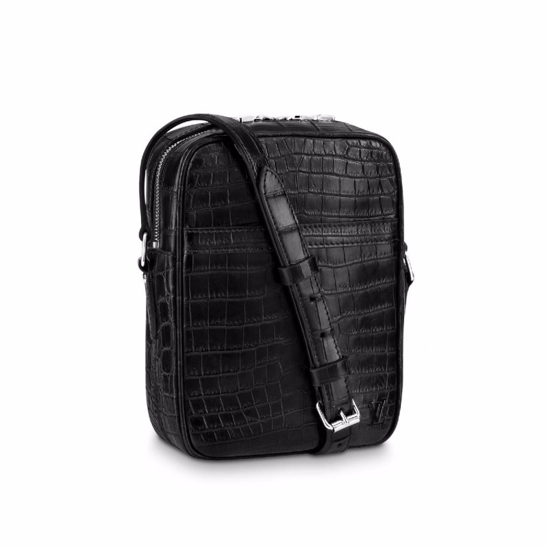 Noir Cuir de veau et cuir de crocodile Doublure textile Finitions en cuir de vache et cuir de crocodile Pièces métalliques argentées Bandoulière ajustable en cuir avec patte d’épaule Poche extérieure à l’avant Poche plate intérieure 【颜色】颜色如图 【尺码】均码 【合身度与测量】 【护理及保养】 *2020.05.31*8.00*GW*N94715*18500.0*颜色如图