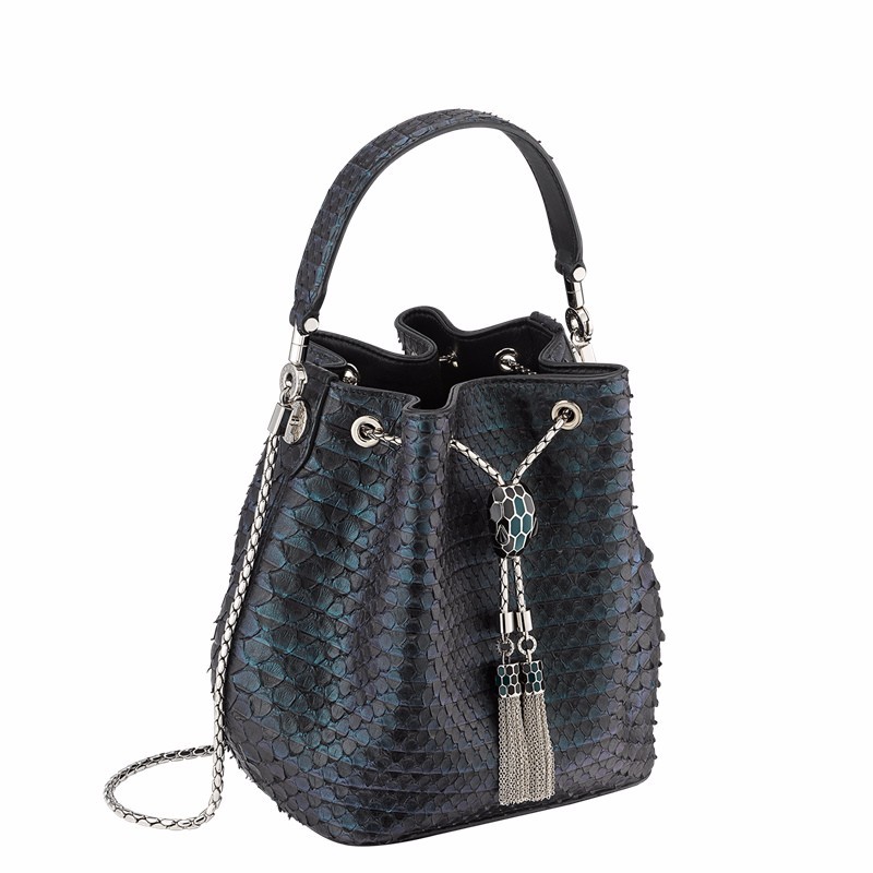 【包邮包税】BVLGARI/宝格丽 19秋冬新款 Serpenti Forever蛇首扣褶纹蟒蛇皮水桶包 288139