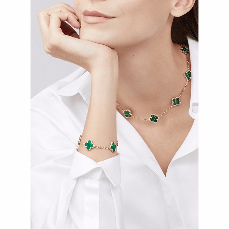 【包邮包税】Van Cleef & Arpels/梵克雅宝 经典款Vintage Alhambra系列 18K金黄金镶嵌孔雀石五花四叶草 手链 VCARL80900
