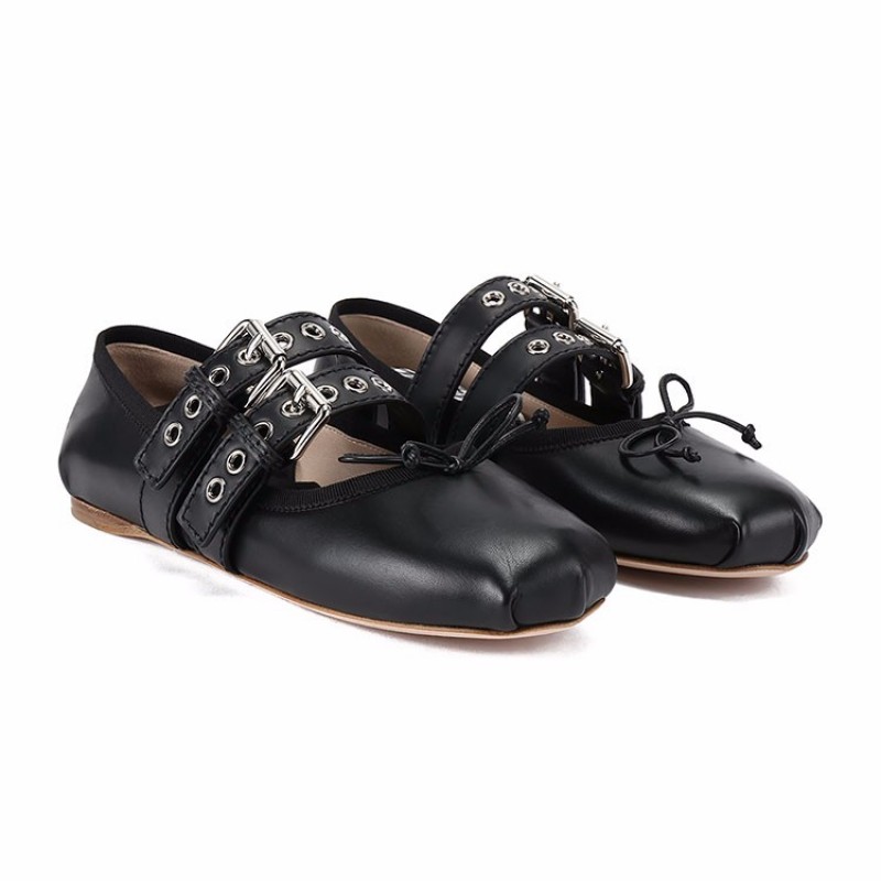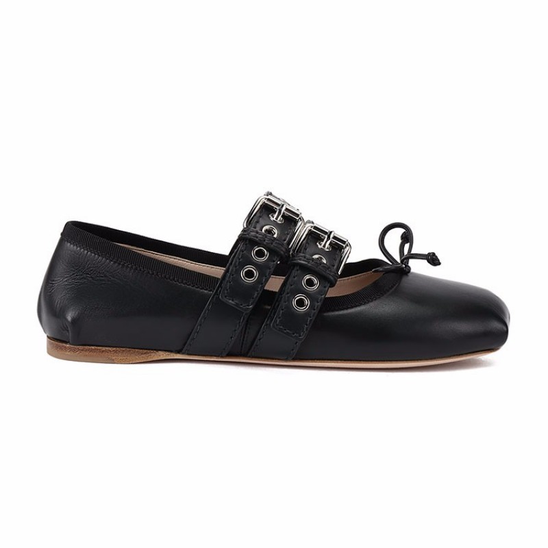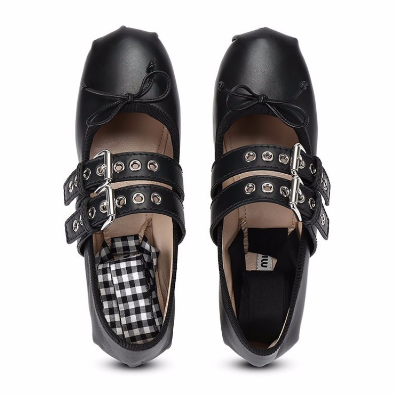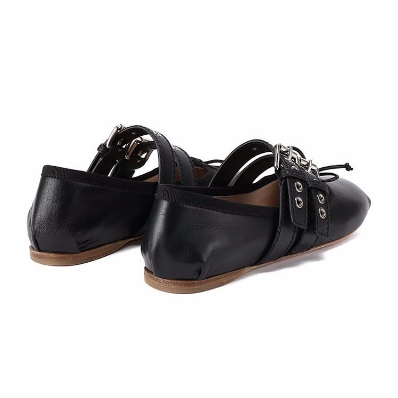 MiuMiu/缪缪 黑色 女士绑带式皮革芭蕾平底鞋 5F466A_3KSR_F0002_F_B005 2020年春夏