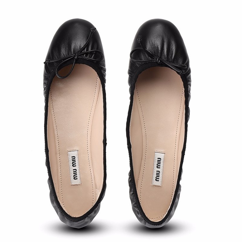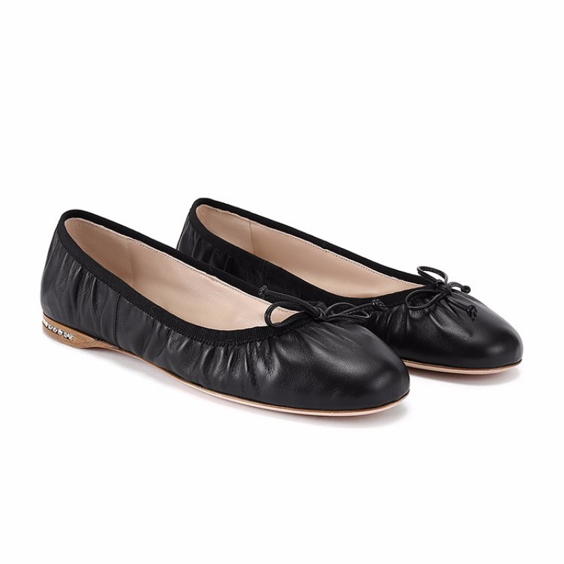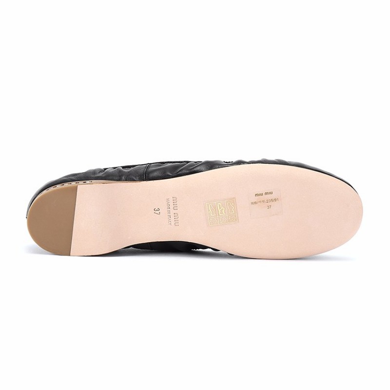 MiuMiu/缪缪 黑色 女士仿水晶装饰跟皮革芭蕾平底鞋 5F915C_038_F0002_F_005 2020年春夏