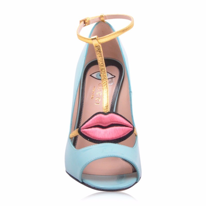 GUCCI/古驰 女士牛皮红唇一字带鱼嘴高跟凉鞋431027
