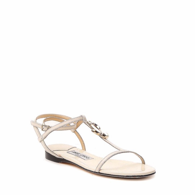 Jimmy Choo/周仰杰 20年春夏 百搭 女性 白色 平跟凉鞋 ALODIEFLAT NPA LATTE