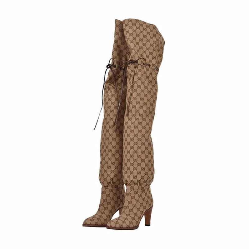 女士(织物)过膝靴,印花 GG 蝴蝶结 时尚