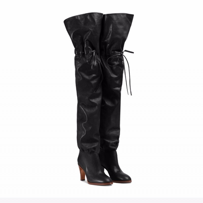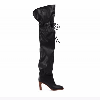 GUCCI/古驰 女士黑色皮革时尚高跟鞋过膝长筒靴女鞋 522689-0QH00-1000