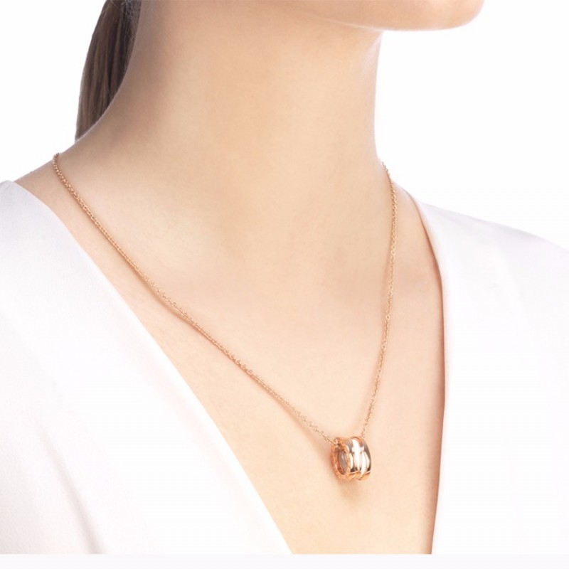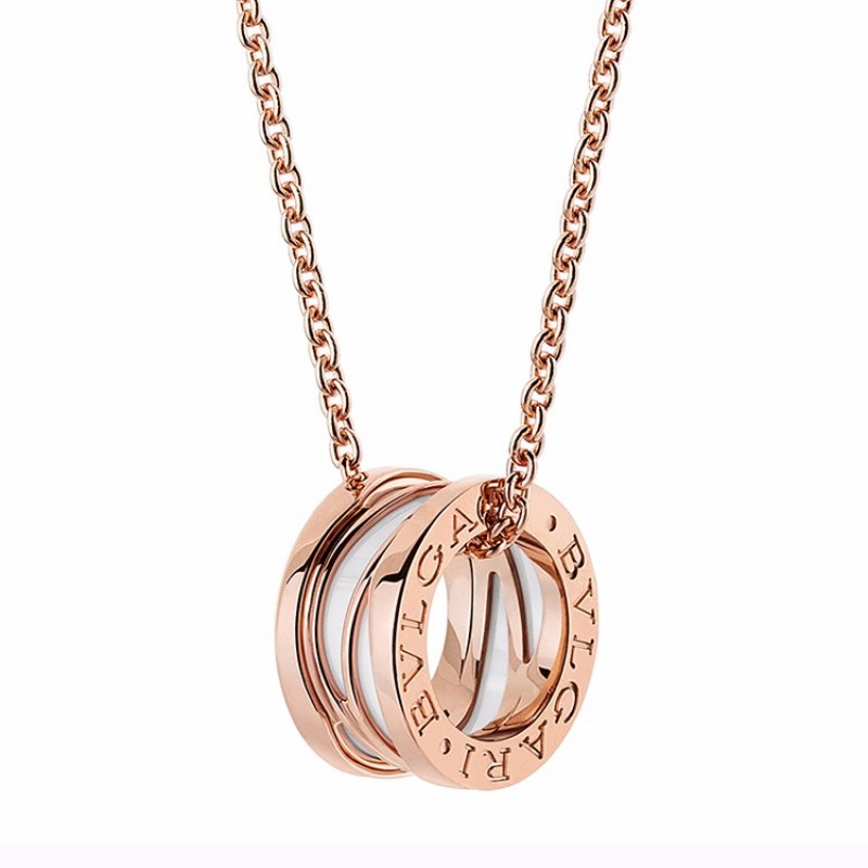 BVLGARI/宝格丽 20新品 女士玫瑰金色18K金陶瓷弹簧项链 CL858579