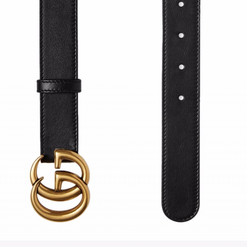 GUCCI/古驰 【20春夏新款 明星同款】男女同款黑色皮革金色双G搭扣商务休闲腰带皮带 414516-AP00T-1000