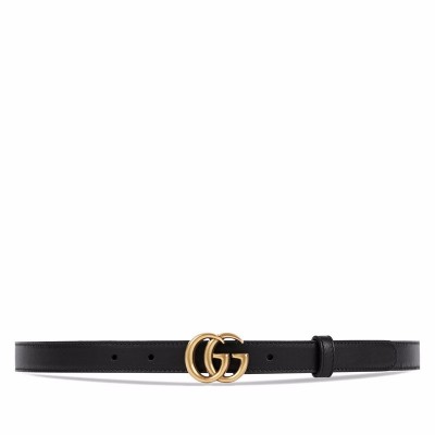 【包邮包税】GUCCI/古驰 19春夏新款女士黑色皮革细款金色双G扣腰带 409417 AP00T 1000