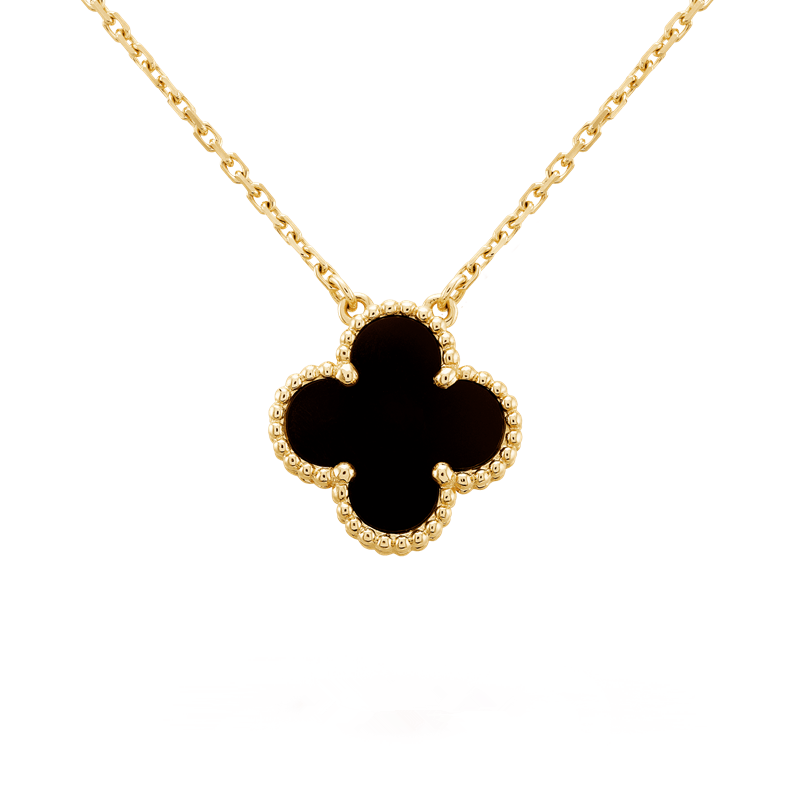 【包邮包税】Van Cleef & Arpels/梵克雅宝 经典 Vintage Alhambra四叶草项链 黄K金, 缟玛瑙
