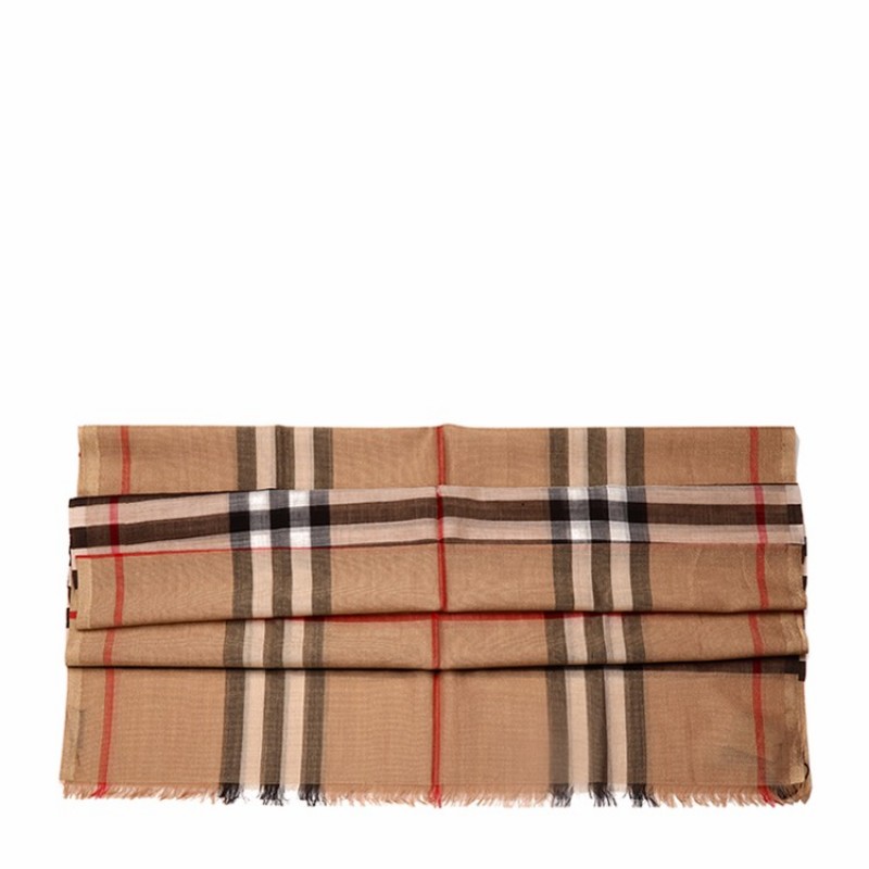 BURBERRY/博柏利 驼色经典格纹 丝毛混纺围巾 80184681