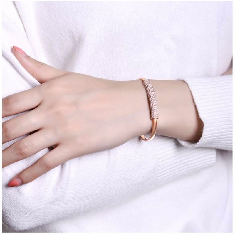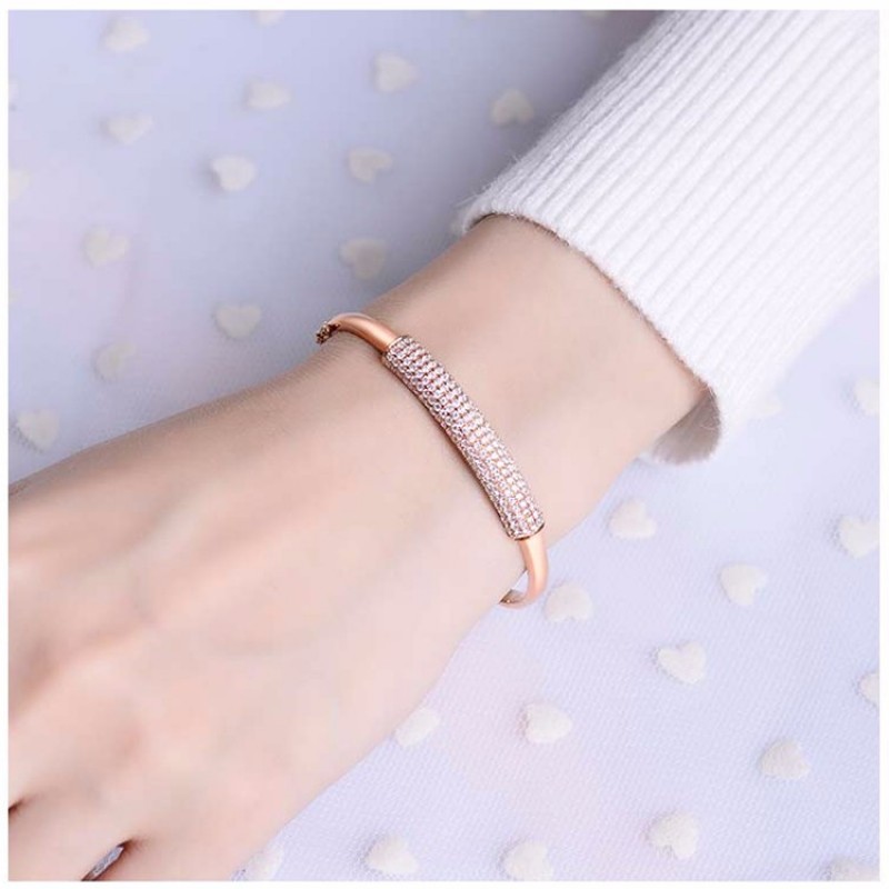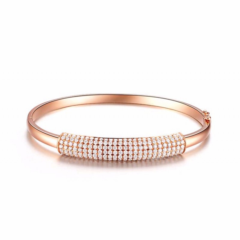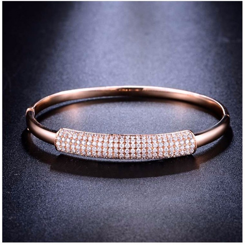 ZOCAI/佐卡伊 18K金玫瑰金色2.1克拉钻石手镯精致群镶手镯珠宝首饰礼物【定制】