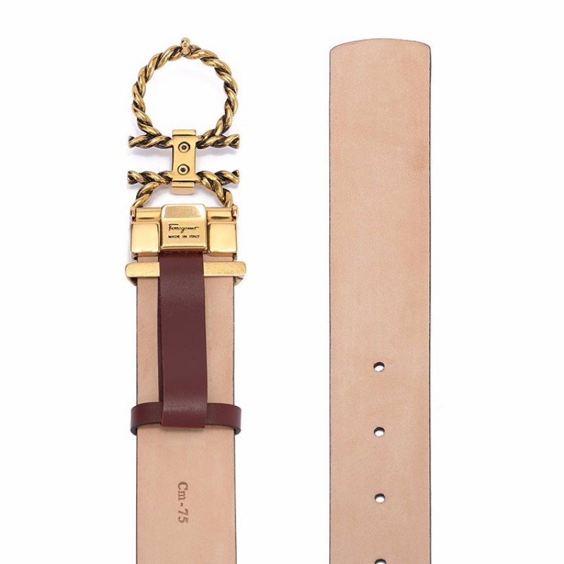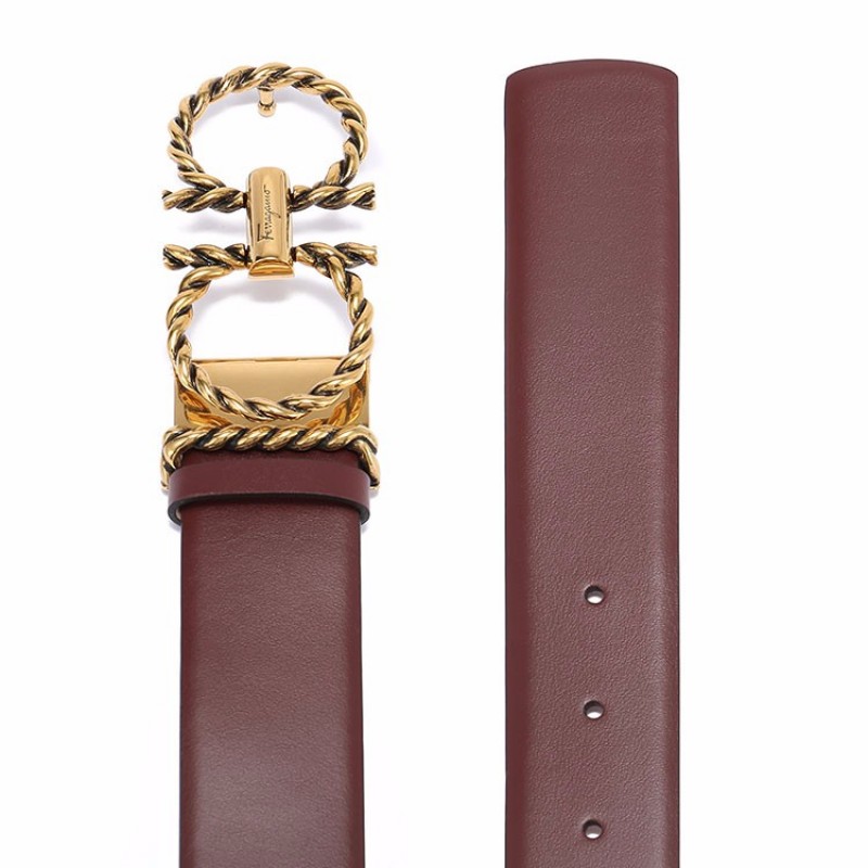 Salvatore Ferragamo/菲拉格慕 酒红色 女士2.5厘米可调式GANCINI腰带 734004-23B753 20年秋冬