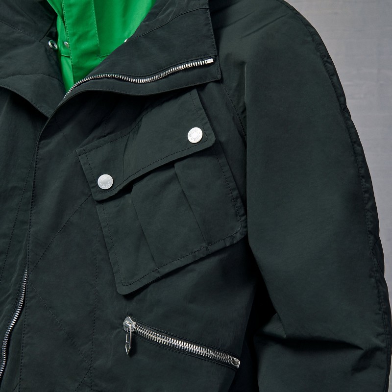 Zipped hooded jacket in water-repellent technical crisp fabric (100% polyamide)