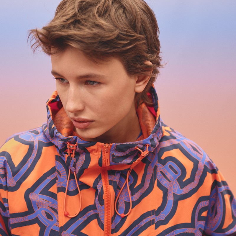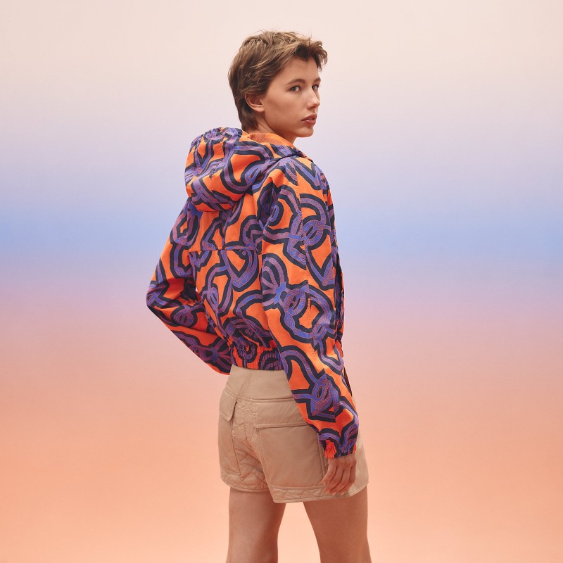 Windbreaker in "Fantaisie d'Etriers" printed technical canvas (100% polyamide)