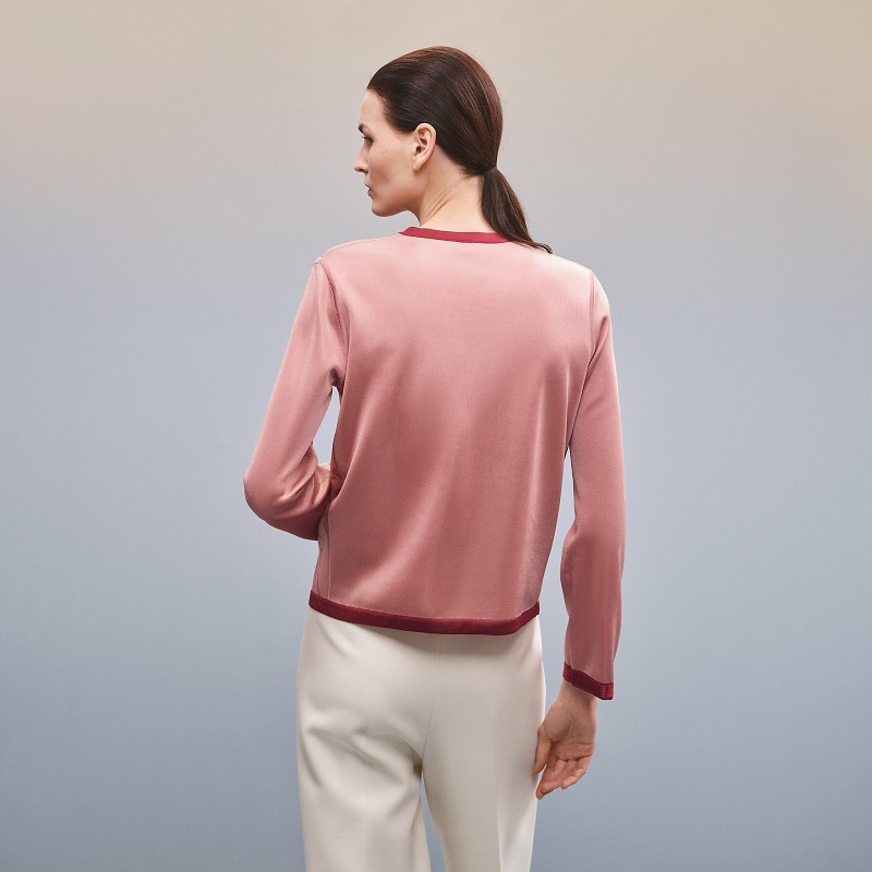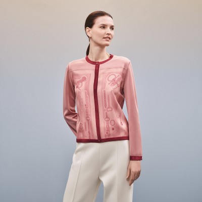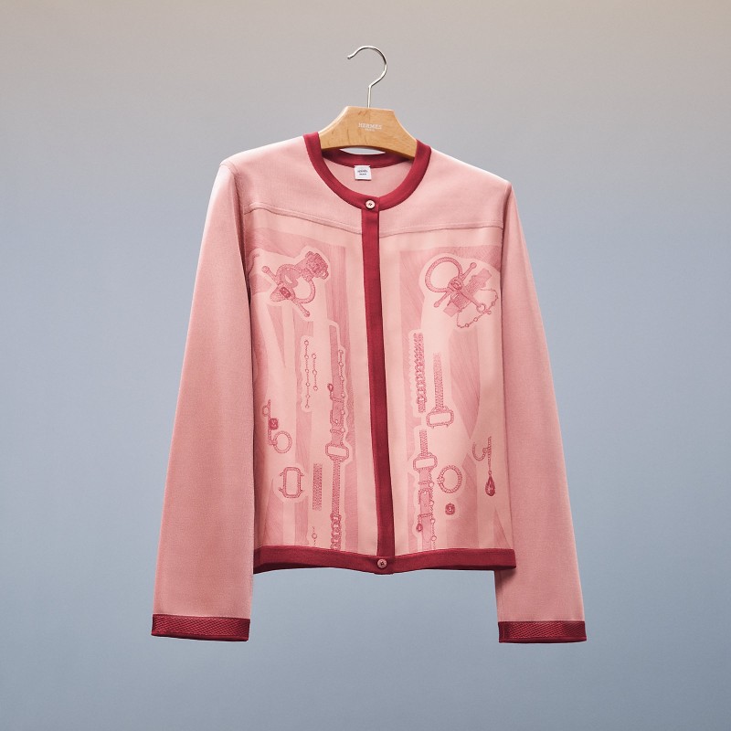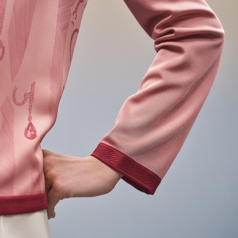 Long-sleeve reversible twillaine cardigan in silk with "Etude pour une Parure Finesse" printed silk twill (100% silk, knit: 92% silk, 6% polyamide, 2% elastane)- Crewneck- Collar and bottom fastening with mother-of-pearl buttons- Middle front button facing fastening with hidden mother-of-pearl buttons- Contrasting finishesMade in ItalyThis piece runs true-to-size.