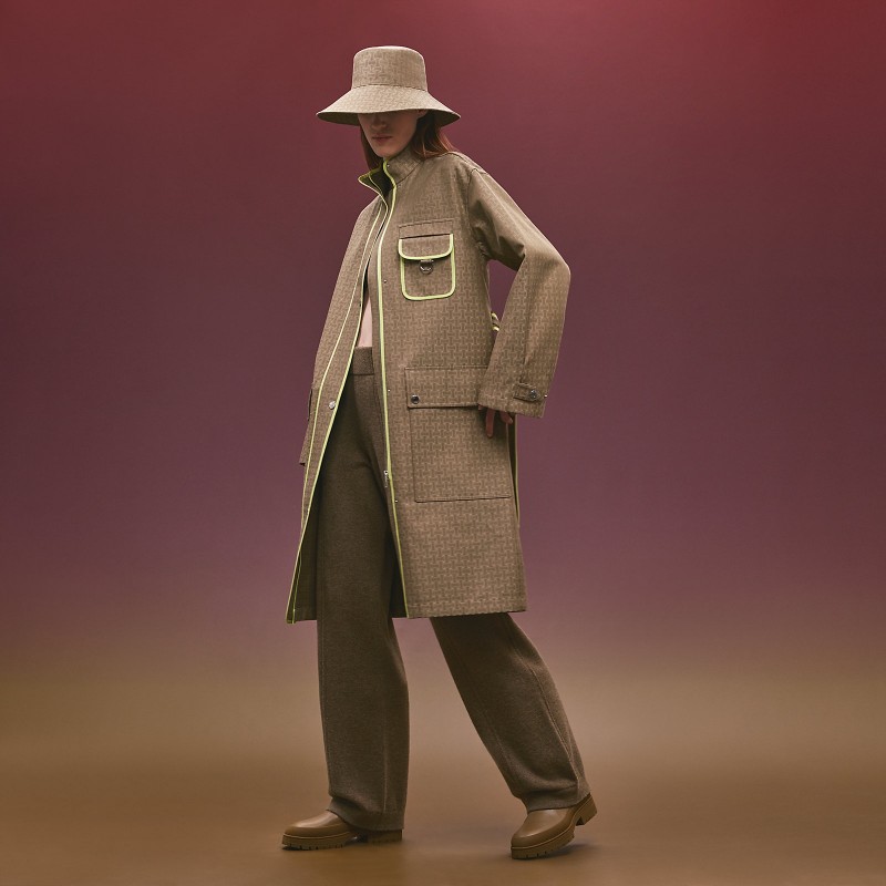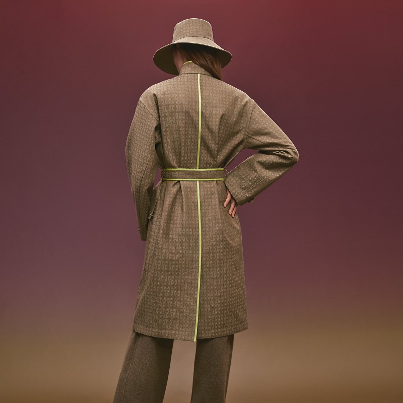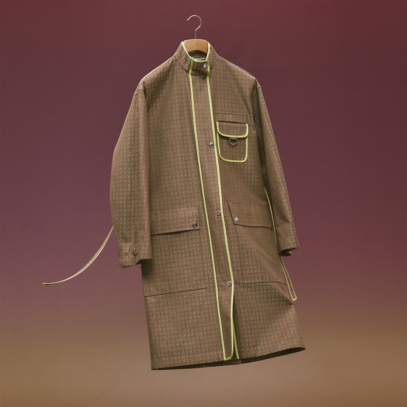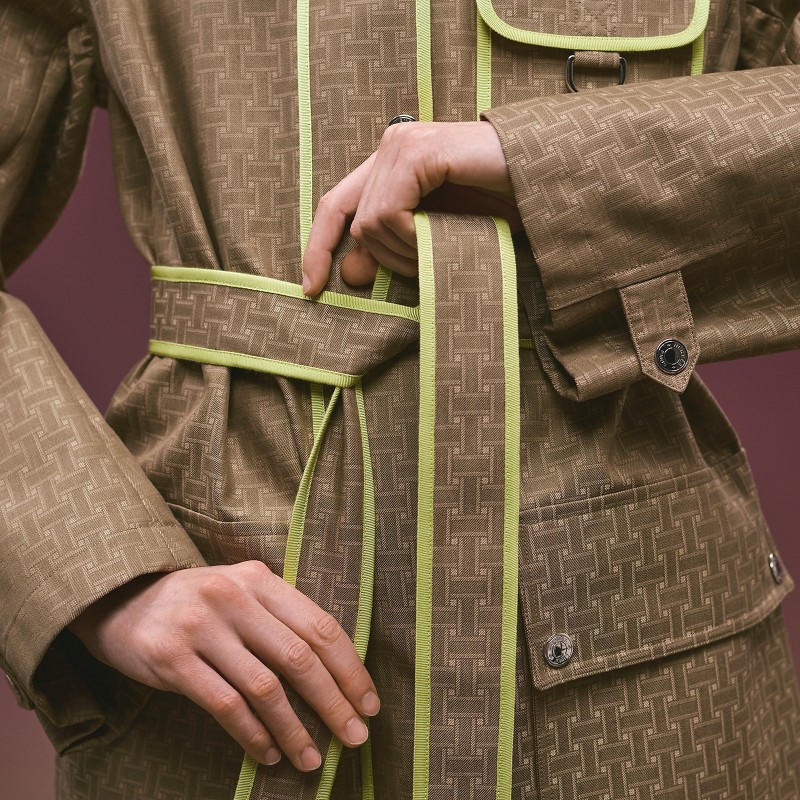 Trench coat in water-repellent jacquard cotton with "Mosaique" motif (100% cotton)