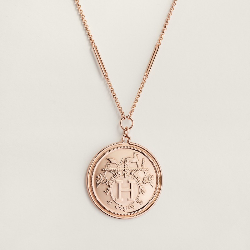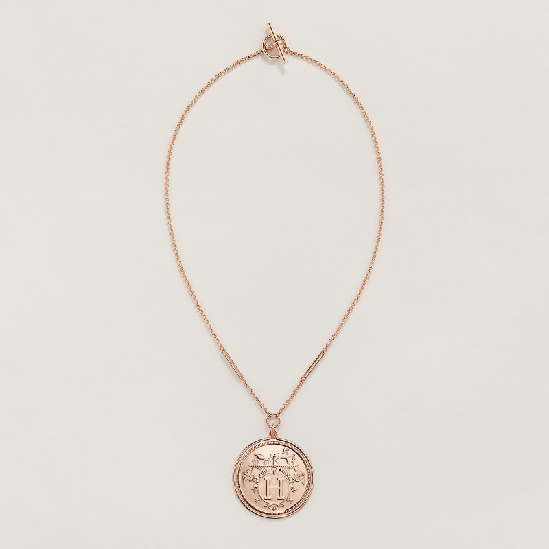 Pendant in rose gold with toggle closureTranscending time, the Hermès Ex-Libris motif lends its seal to this jewelry collection, designed to be worn effortlessly.Made in France