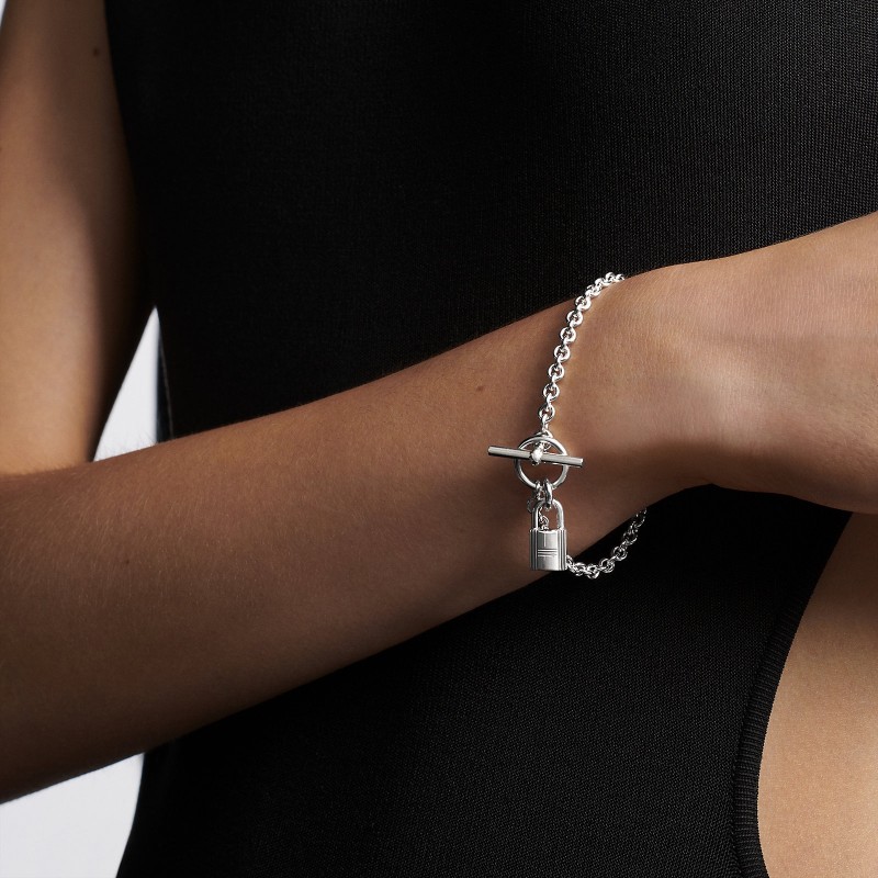 Bracelet in sterling silver with toggle closureClassic Hermès leather goods meet precious objects in the Amulettes collection.Made in Italy/France
