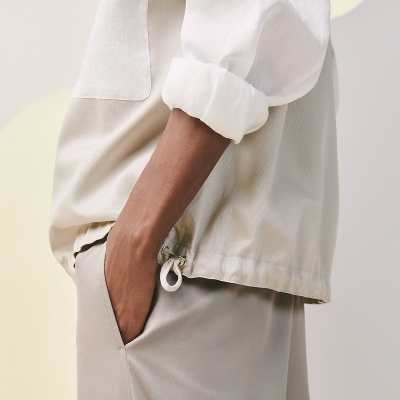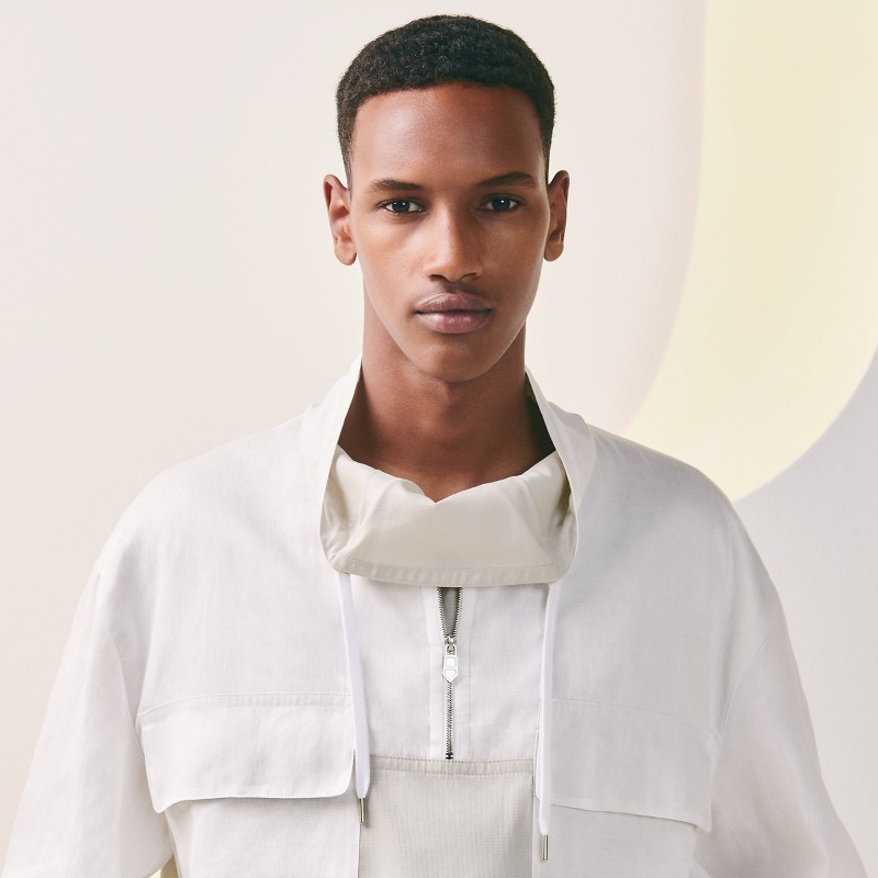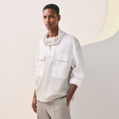 Long-sleeve sweater with mock neck collar in braided cotton voile (100% cotton)- Zipped mock neck collar with drawstring- Buttoned front flap pocketsMade in ItalyThis piece runs true-to-size.