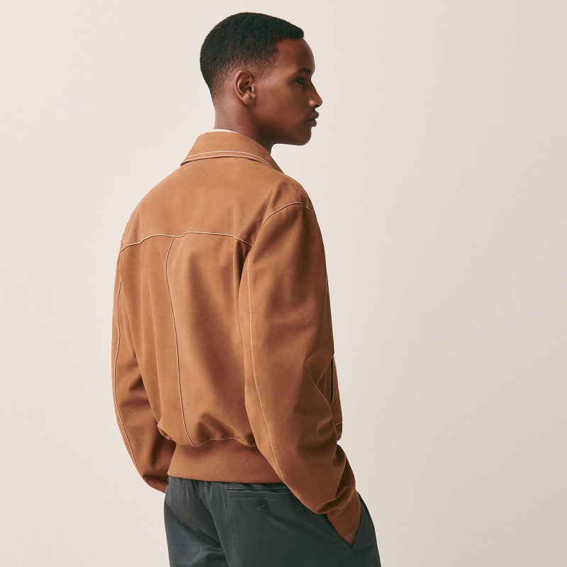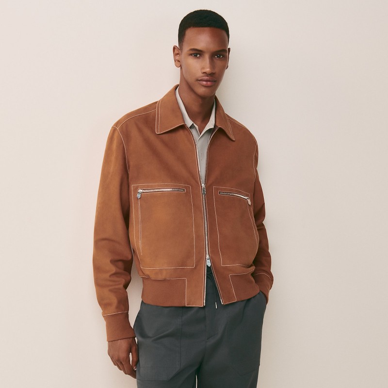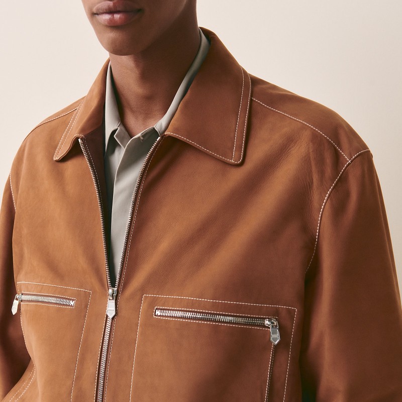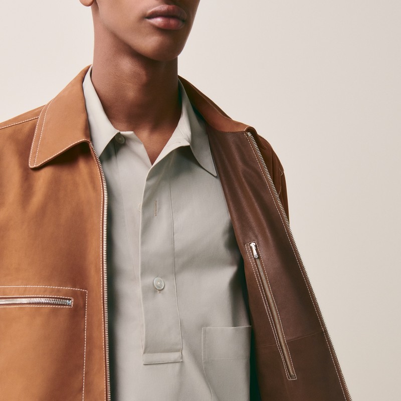 Zipped rib-trim jacket in plain Plume nubuck calfskin (100% calfskin)- Two-way zip- Rib-trim cuffs and jacket bottom- Zipped front pocketsMade in FranceThis piece runs true-to-size.