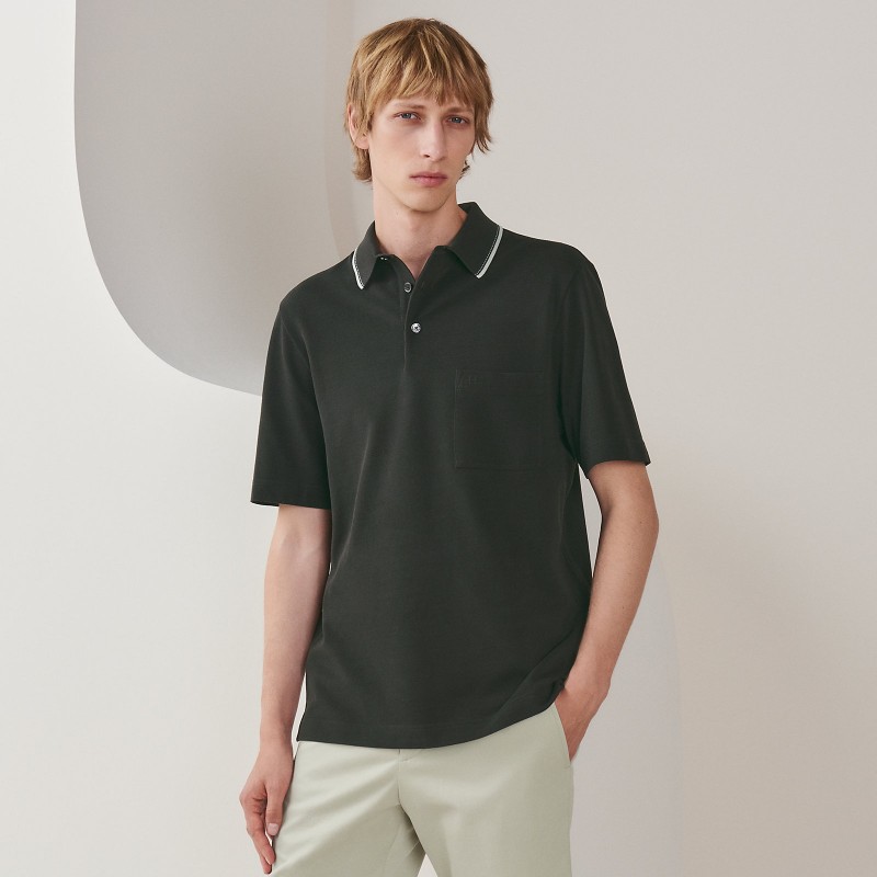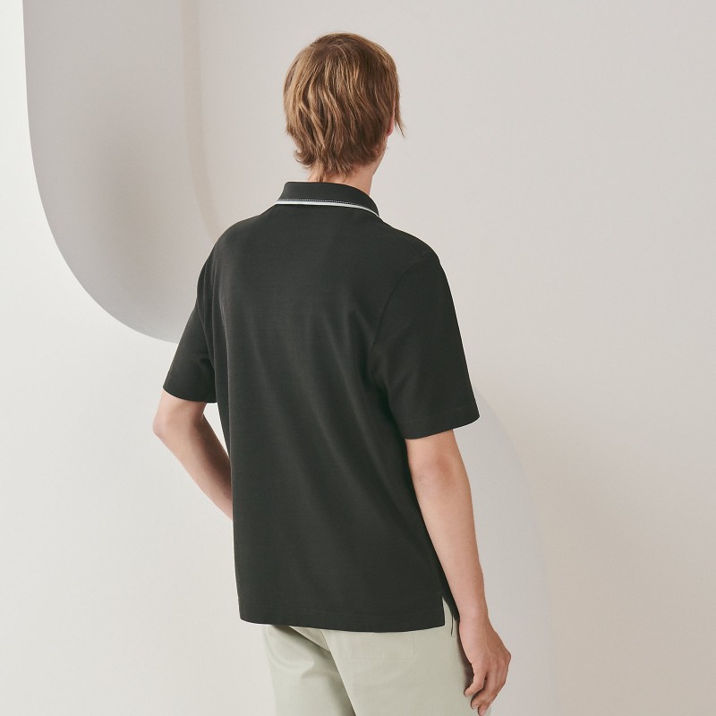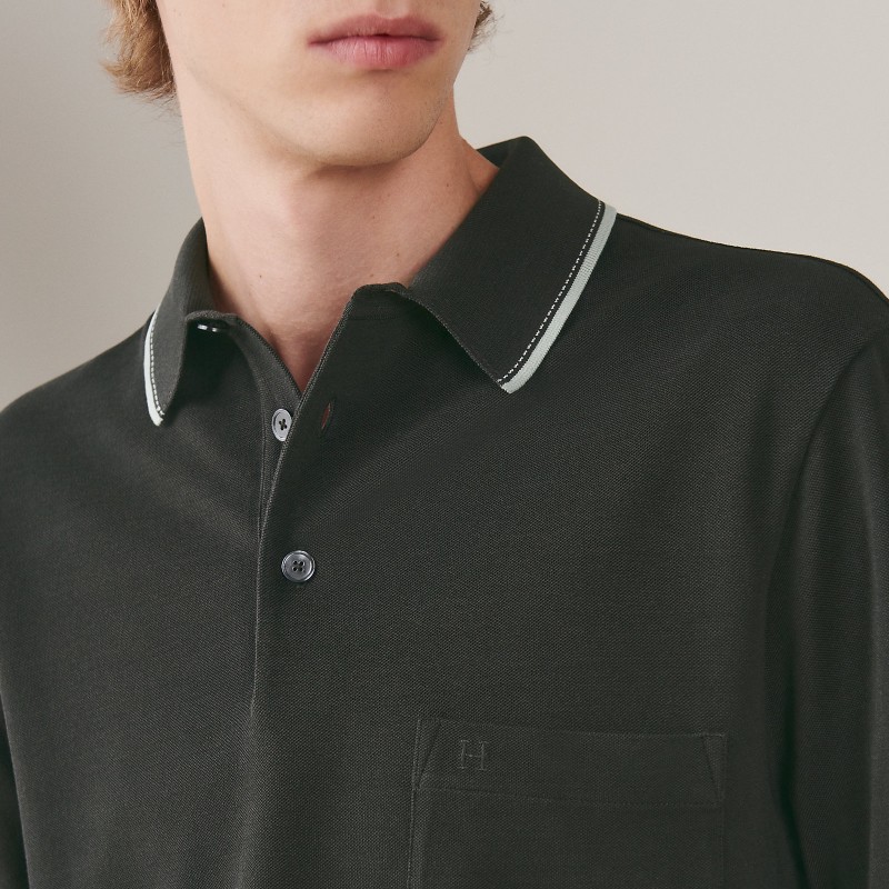 Short-sleeve polo shirt in cotton with "Piqures Sellier" detail (100% cotton)- Rib-trim buttoned polo neckline with contrasting "Piqures Sellier" detail- Front pocket featuring "H" embroideryMade in ItalyThis piece runs true-to-size.