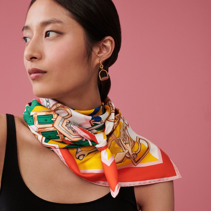 This essential Hermès accessory complements any outfit. It can be worn many ways - around your neck, as a top, at the waist or as a headscarf! The Hermès scarf is an infinite source of creativity and storytelling that constantly evolves thanks to the new designs and color combinations offered each season.