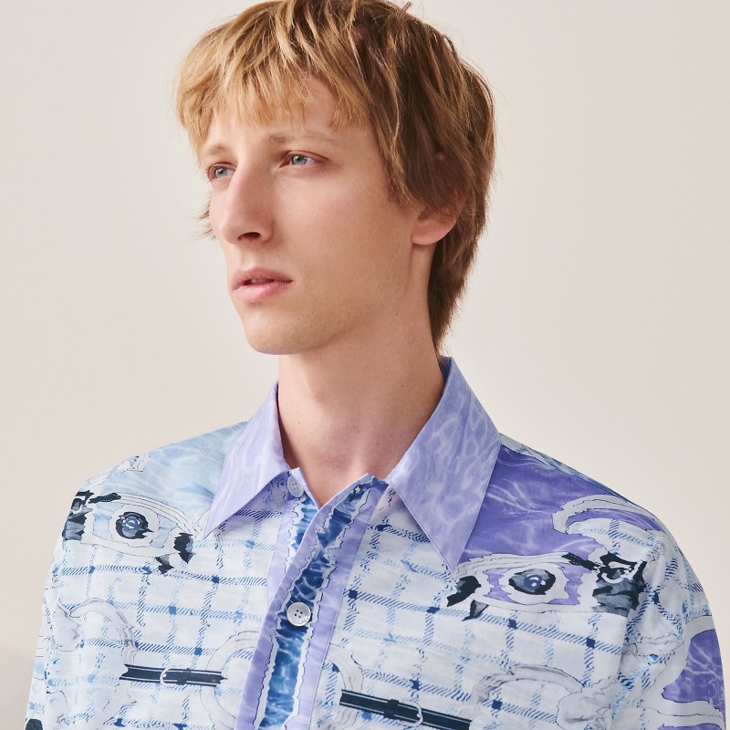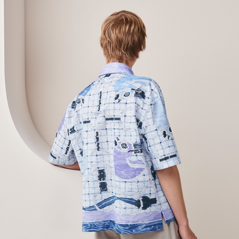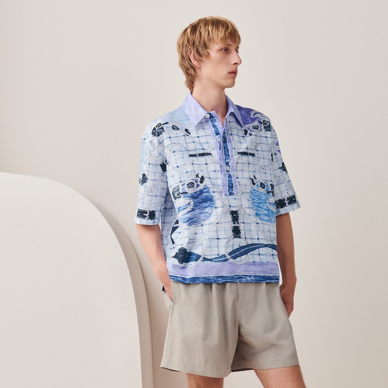 Loose fitting boxy fit shirt in cotton and "Tatersale Remix Bis" print (100% cotton)- Polo neckline- Pure mother-of-pearl buttons- Short sleeves- Straight cut bottomMade in FranceThis piece runs true-to-size.