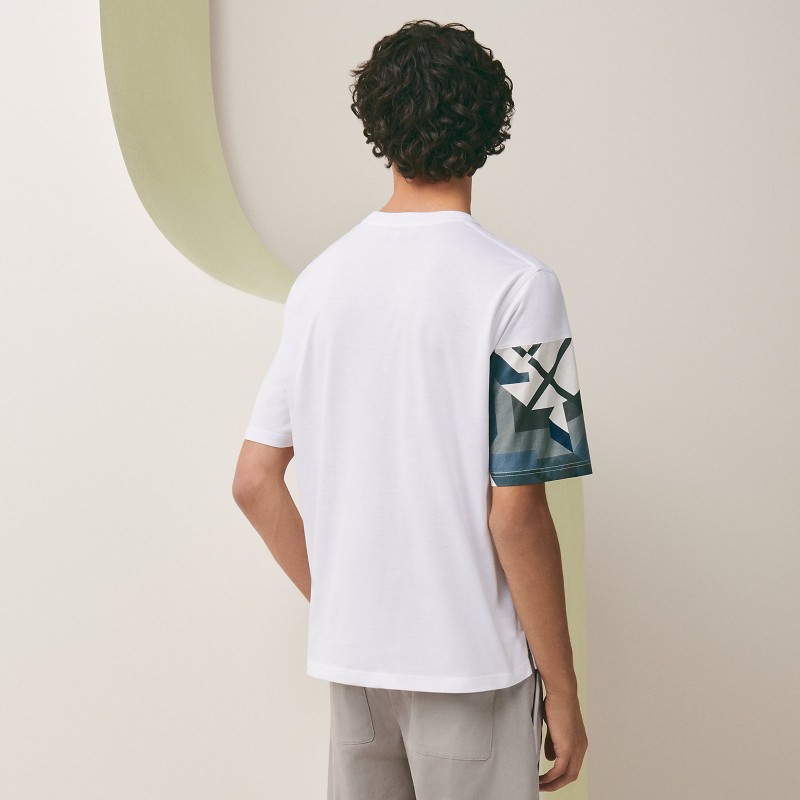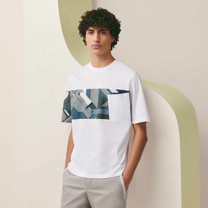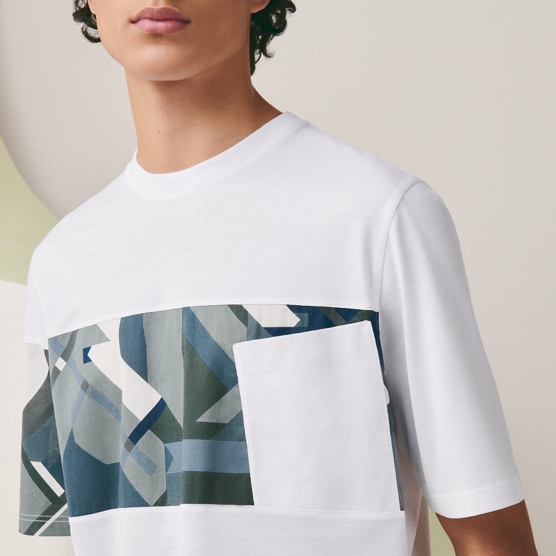 Short-sleeve crewneck t-shirt in sea island cotton with "Poche en rayure imprime" detail (100% cotton)- Front pocket- Front with printed poplin insertMade in ItalyThis piece runs true-to-size.