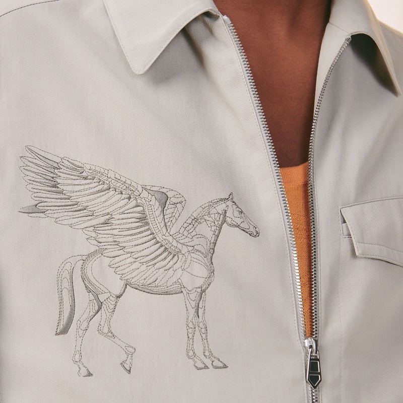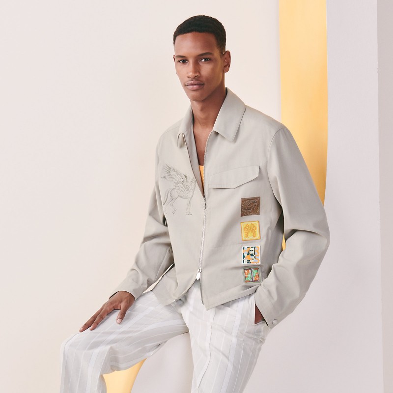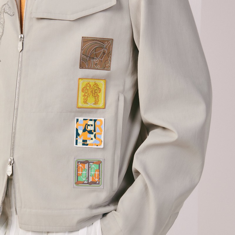 - Two-way zip - Front flap pocket - "Pegase" embroidery detail and 4 patches on the side in jacquard, with embroidery, silk and rubber inspired by Hermès' emblematic designs