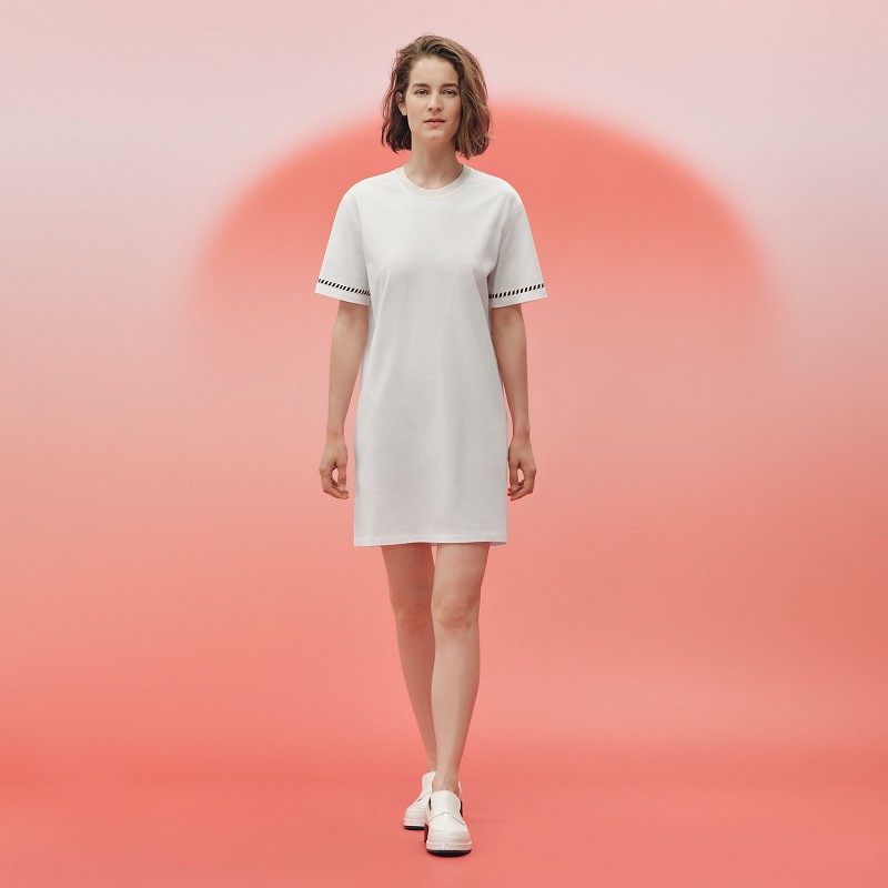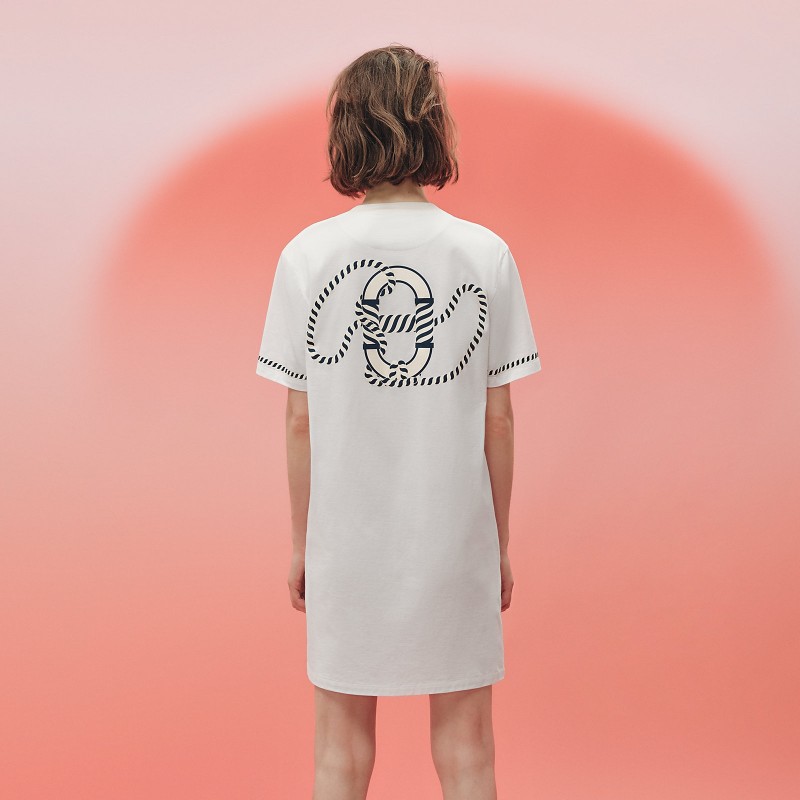 Printed dress in plain cotton jersey (100% cotton)- Back with "Canoe" maxi screen print detail- Cuffs and back with contrasting "Canoe" print detailThis piece runs true-to-size.Made in France