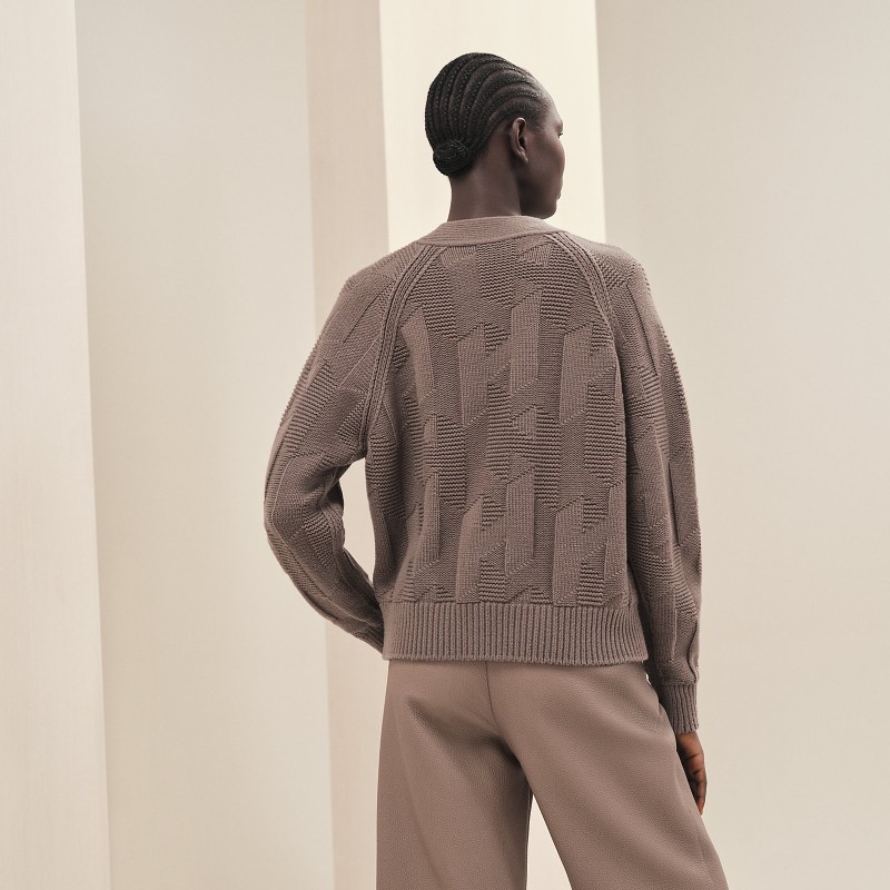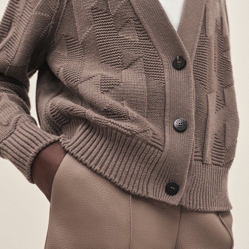 Long-sleeve cardigan in virgin wool with "H" motif (100% virgin wool)